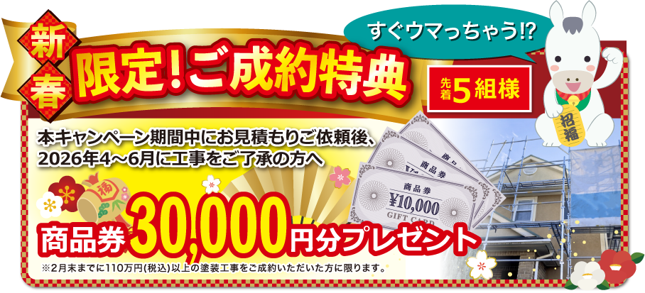 新春の特別キャンペーンで、塗装工事を「ウマく」「お得」に進めましょう!
